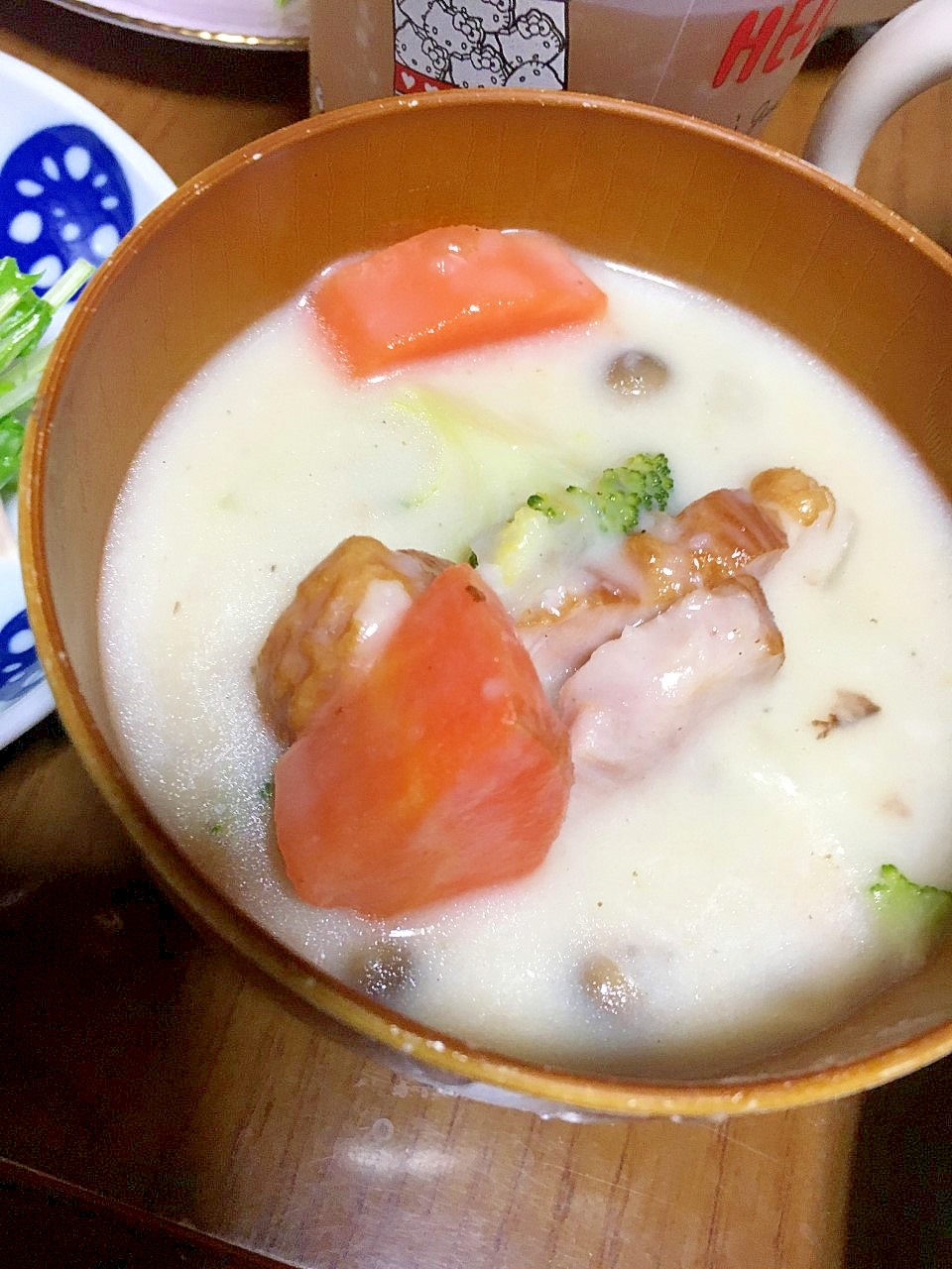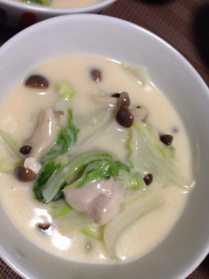 小松菜ときのこ 野菜たっぷり豆乳シチュー 超簡単 うさうさレシピ